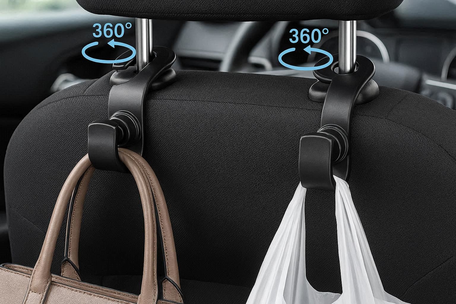 Rotatable Car Headrest Hooks 360 Degree Swivel for Flexible Storage Options